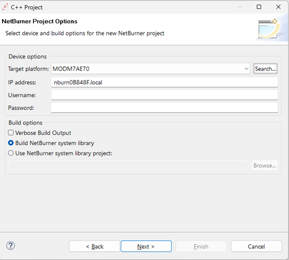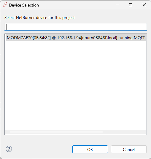 Select a NetBurner project: