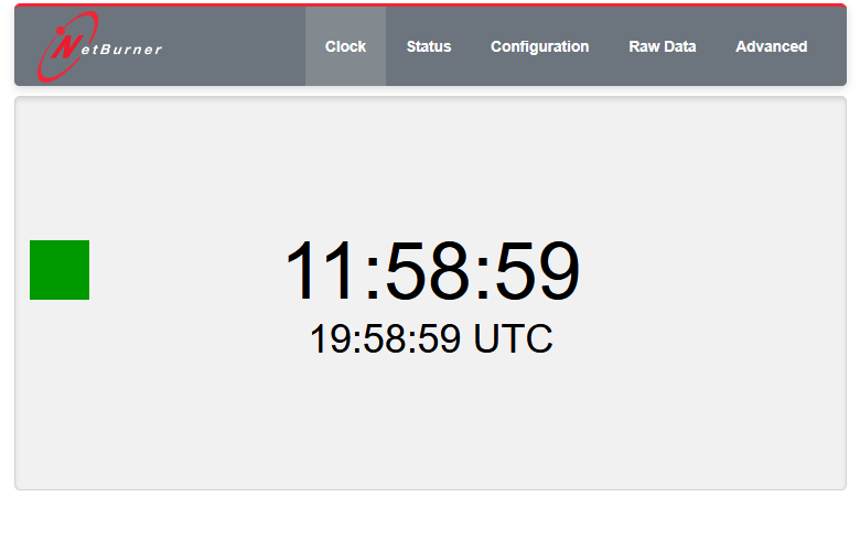 Then, discover the unit’s IP address and connect to its web-based configuration page. If your NTP1061 and computer are both connected to the same Internet connection, just visit https://discover.netburner.com — within seconds of bootup it should appear in the list with links to the Device Web Page. (Ignore the Config page for now, that’s for advanced configuration.) You can also simply visit http://nbntp.local if your computer supports mDNS/Bonjour. If you don’t have Internet access, we also offer Local Discover options. Finally, you can look at your network’s DHCP server: NetBurner devices have MACs starting with 00:03:F4 .